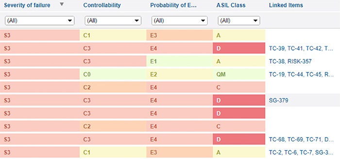 Both systems provide risk-based development, through hazard analysis, risk identification, and traceability of risk artifacts to the product requirements mitigating those risks. While both systems support ISO 26262, Perforce ALM specifically supports risk models for additional industries, such as ISO 14971 or IEC 62304 for medical device development. Below are screenshots comparing ASIL classification in DOORS Next and Perforce ALM.