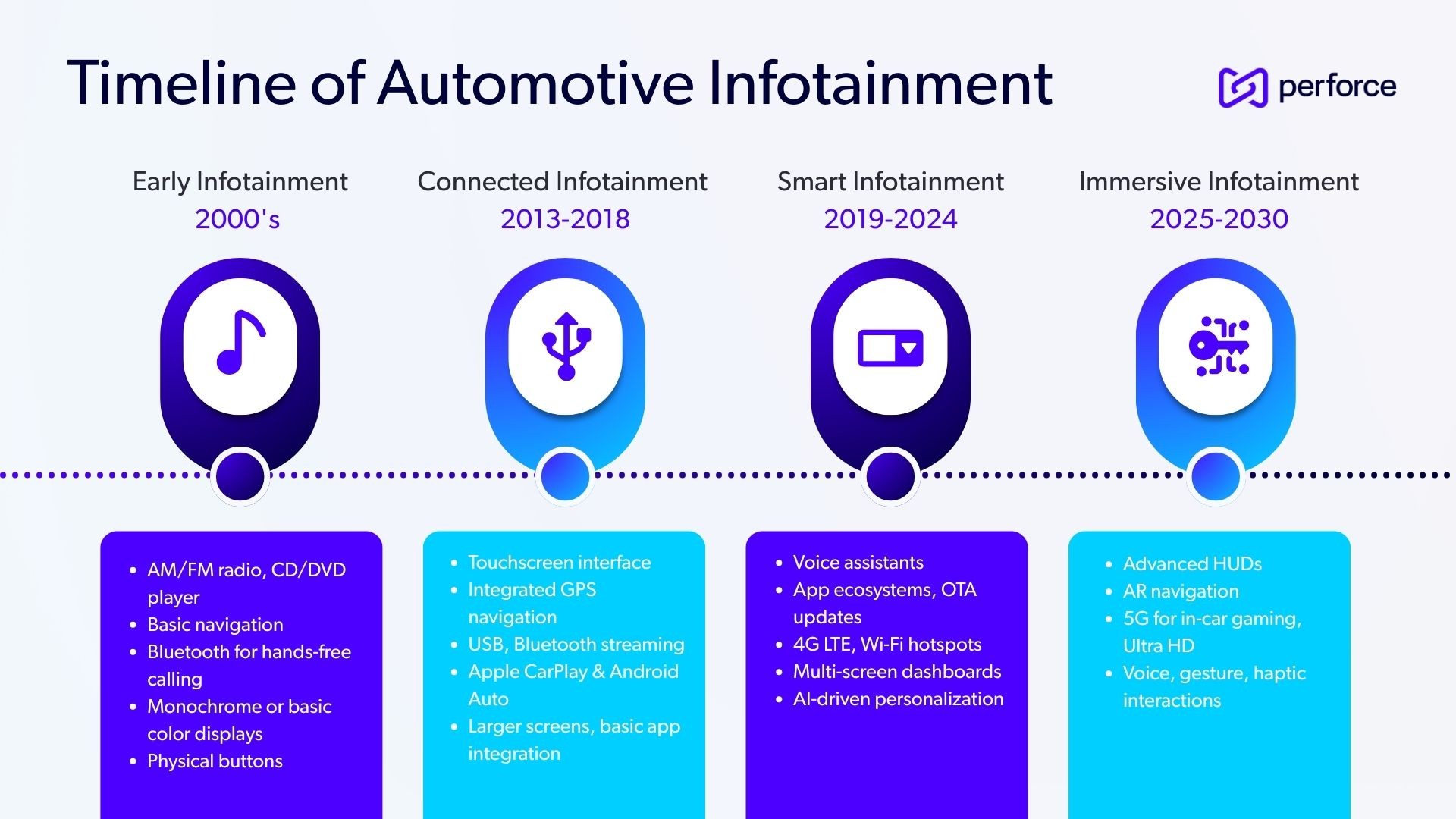 Automotive infotainment systems are a core component of the modern driving experience. As these systems expand in features and complexity, the challenges for the software design teams behind them also increase.