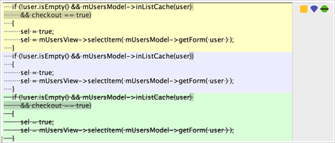 text that is in the second file but not the first file. The base file is indicated by the yellow icon (
