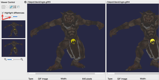 For information on diffing images from within P4V, see Diffing images in the Helix Core Visual Client (P4V) Guide.
