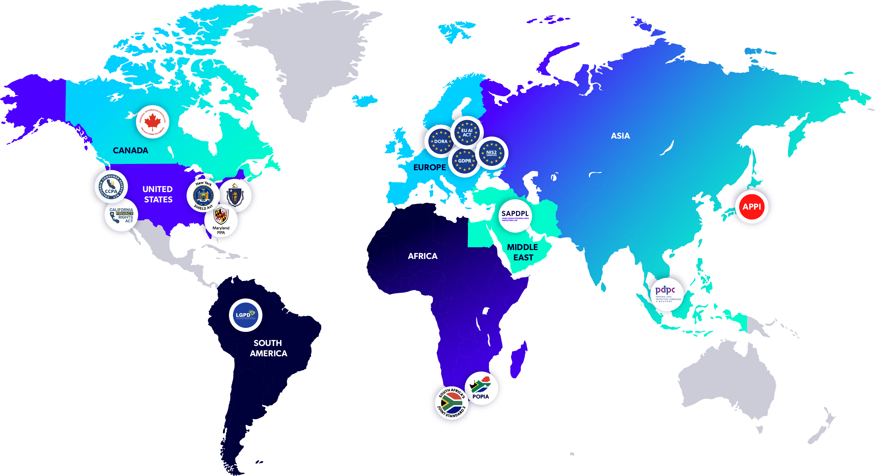 Global data privacy laws can and will influence any organizations’ operations. Let’s break down some international privacy laws by country and region, so you know how to address each of their requirements.
